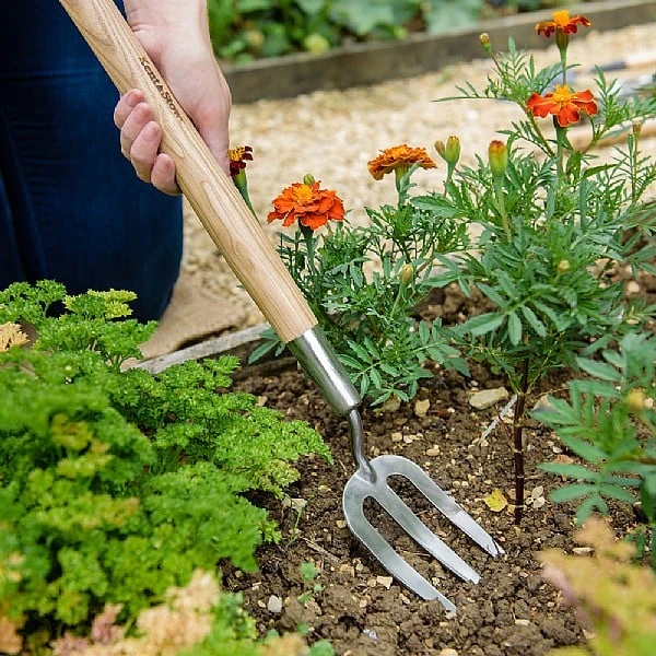 - If you struggle to bend down to tend to your flower beds and borders, then the Kent & Stowe Long Handled Stainless Steel Border Fork is perfect for you